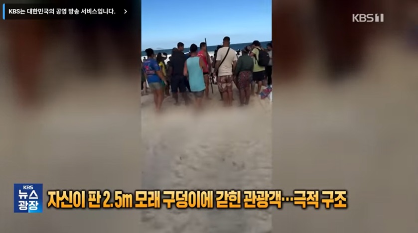 뉴스이슈/ 자신이 판 2.5m 모래 구덩이에 갇힌 관광객.. 극적 구조