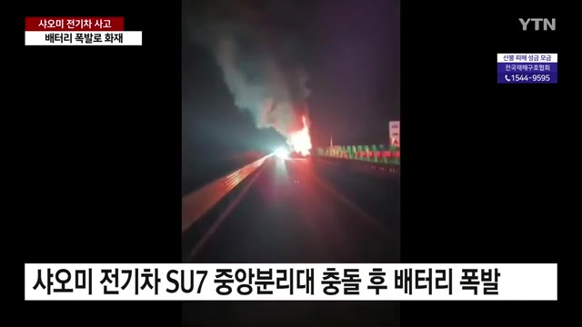 샤오미 전기차 SU7이 자율주행보조 기능을 켠 상태에서 충돌 사고를 겪어 배터리 폭발로 이어졌다.